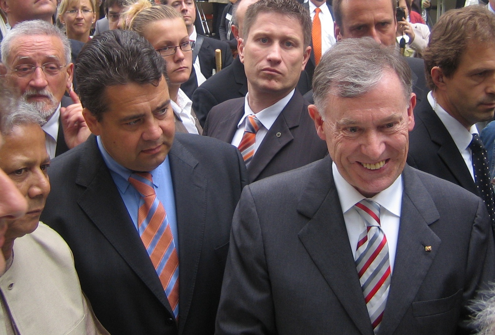 Bildunterschrift: Bundespräsident Horst Köhler (rechts), Bundesumweltminister Sigmar Gabriel (links) und Hubert Weinzierl, Vorsitzender des Kuratoriums der Deutschen Bundesstiftung Umwelt (hinten links)