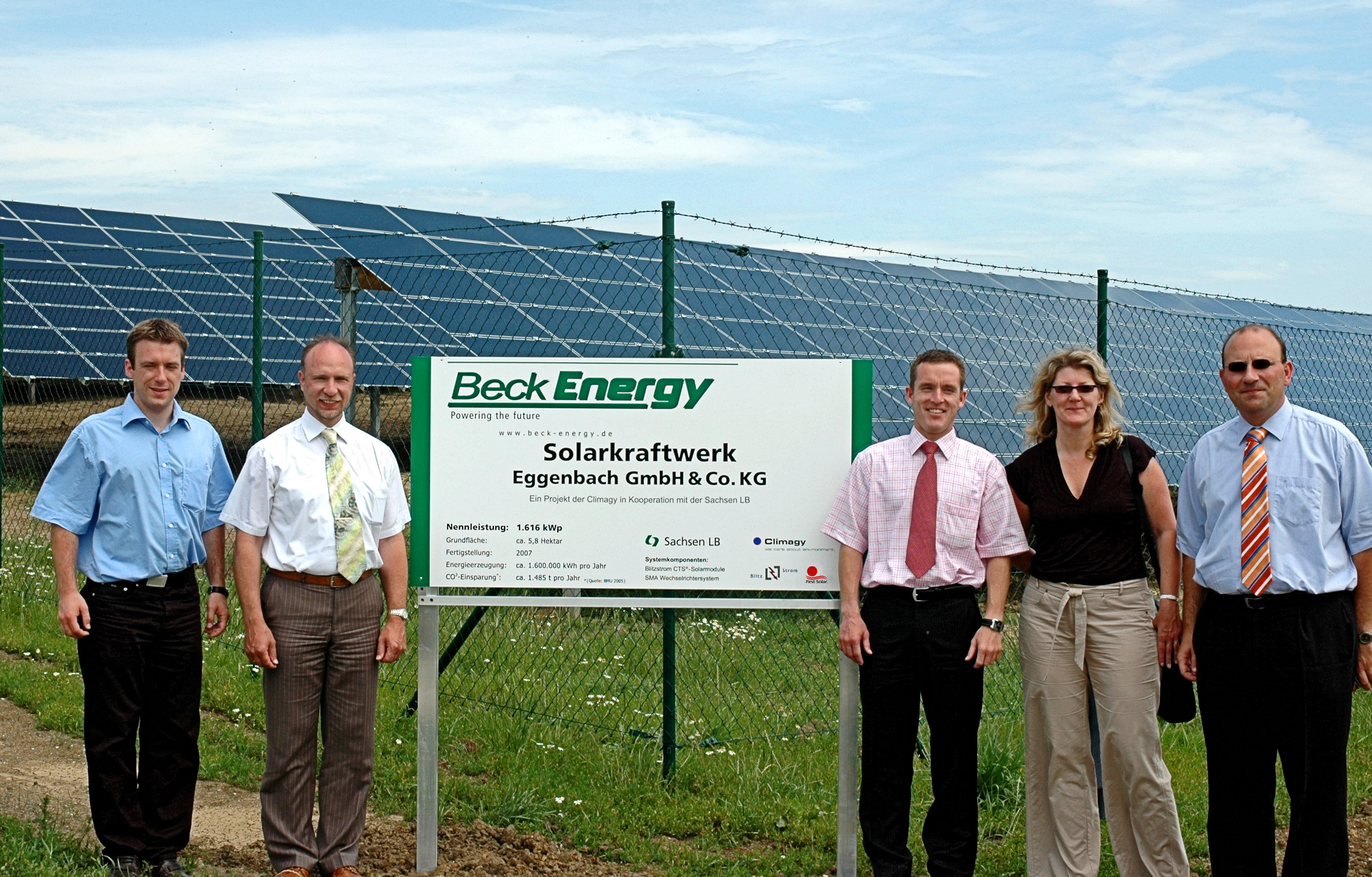 Kolitzheim (iwr-pressedienst) - Ende Juni 2007 wurde im oberfränkischen Eggenbach bei Bad Staffelstein das neueste Solarkraftwerk der Beck Energy GmbH in Betrieb genommen.Die 5,8 ha große Anlage wurde komplett mit CTS Dünnschichtsolarmodulen des Herstellers First Solar realisiert. Mit einer Nennleistung von 1.616 kWp und einem Jahresertrag von 1,6 GWh wird sie jährlich etwa 1.100 Tonnen CO2 einsparen und damit ca. 500 Haushalte klimafreundlich mit Strom versorgen.