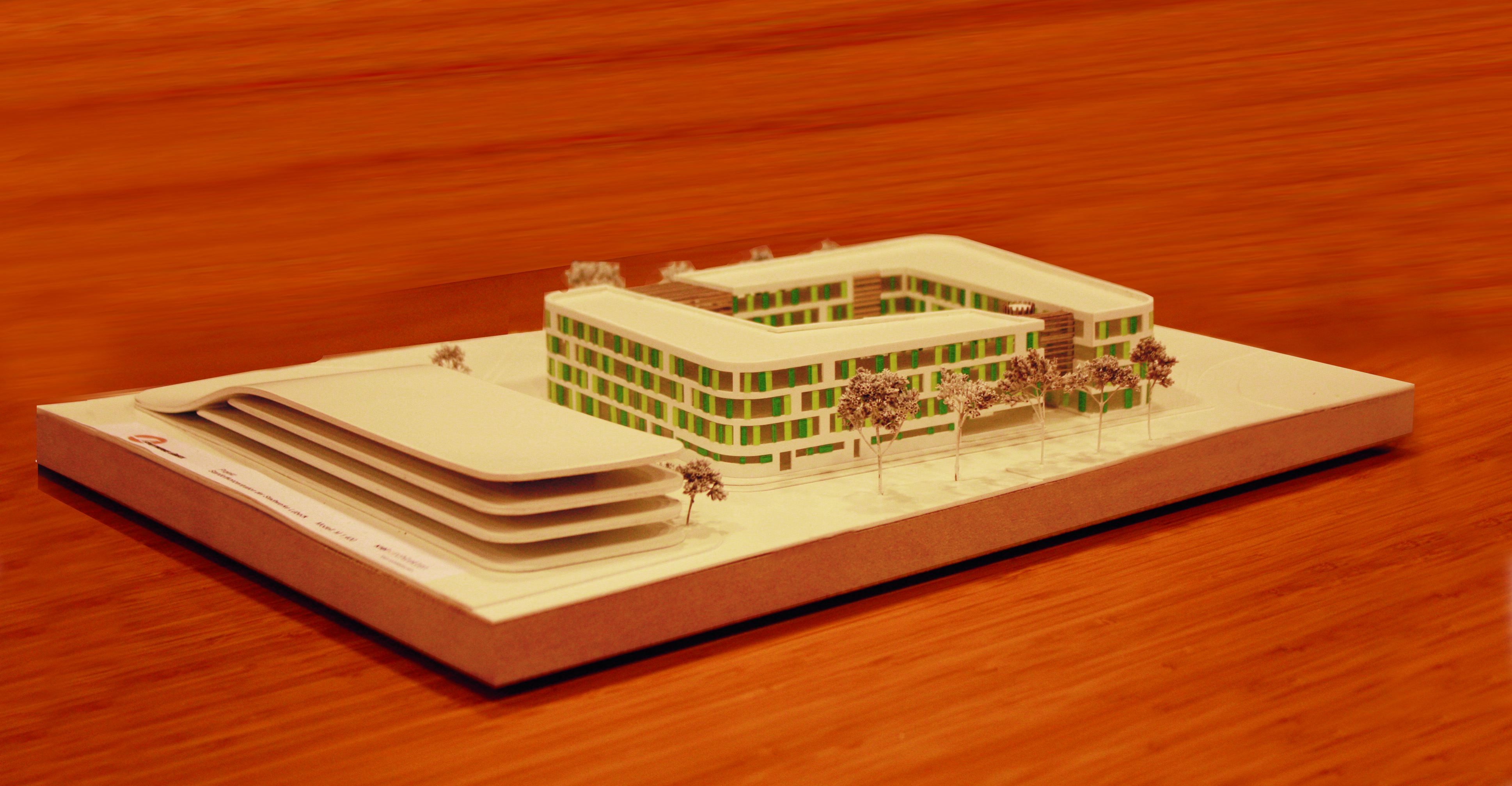 Ein erster/s Entwurf/Modell: Die neue Firmenzentrale der Stadtwerke Lübeck wird ein schickes Öko-Haus