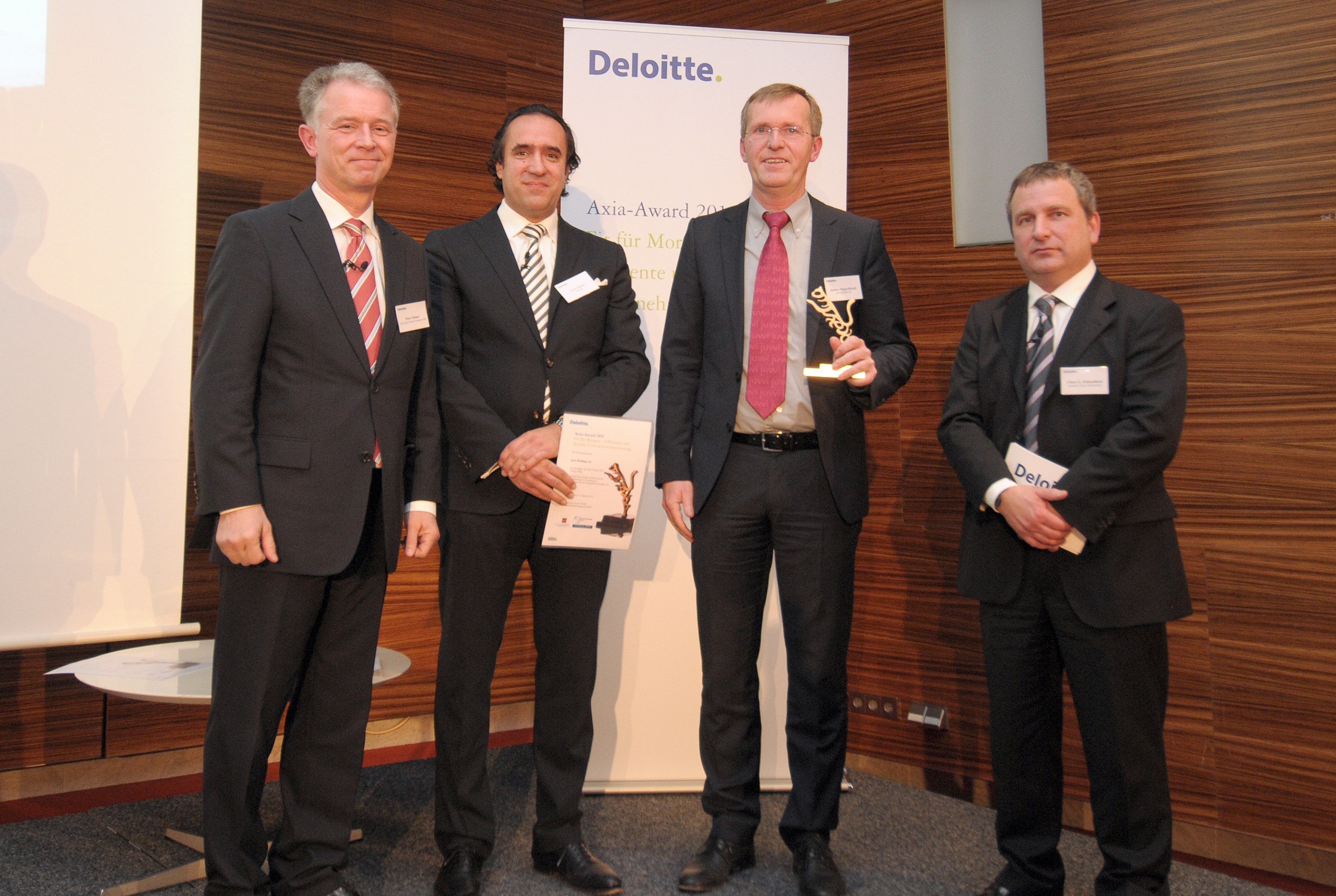 Mit dem Axia-Award 2011 Rhein-Main zeichnet Deloitte mittelständische Unternehmen aus, die sich auf Grund herausragender Leistungen nachhaltig erfolgreich am Markt behaupten. Die juwi-Gruppe erhielt ihn dieses Jahr für ihre klare strategische Ausrichtung, ihr effizientes und flexibles Controlling und Personalmanagement. Ebenfalls ausgezeichnet wurden die STI Group, die Fissler GmbH sowie die HMG Hotel Management und Servicegesellschaft mbH & Co. KG.
