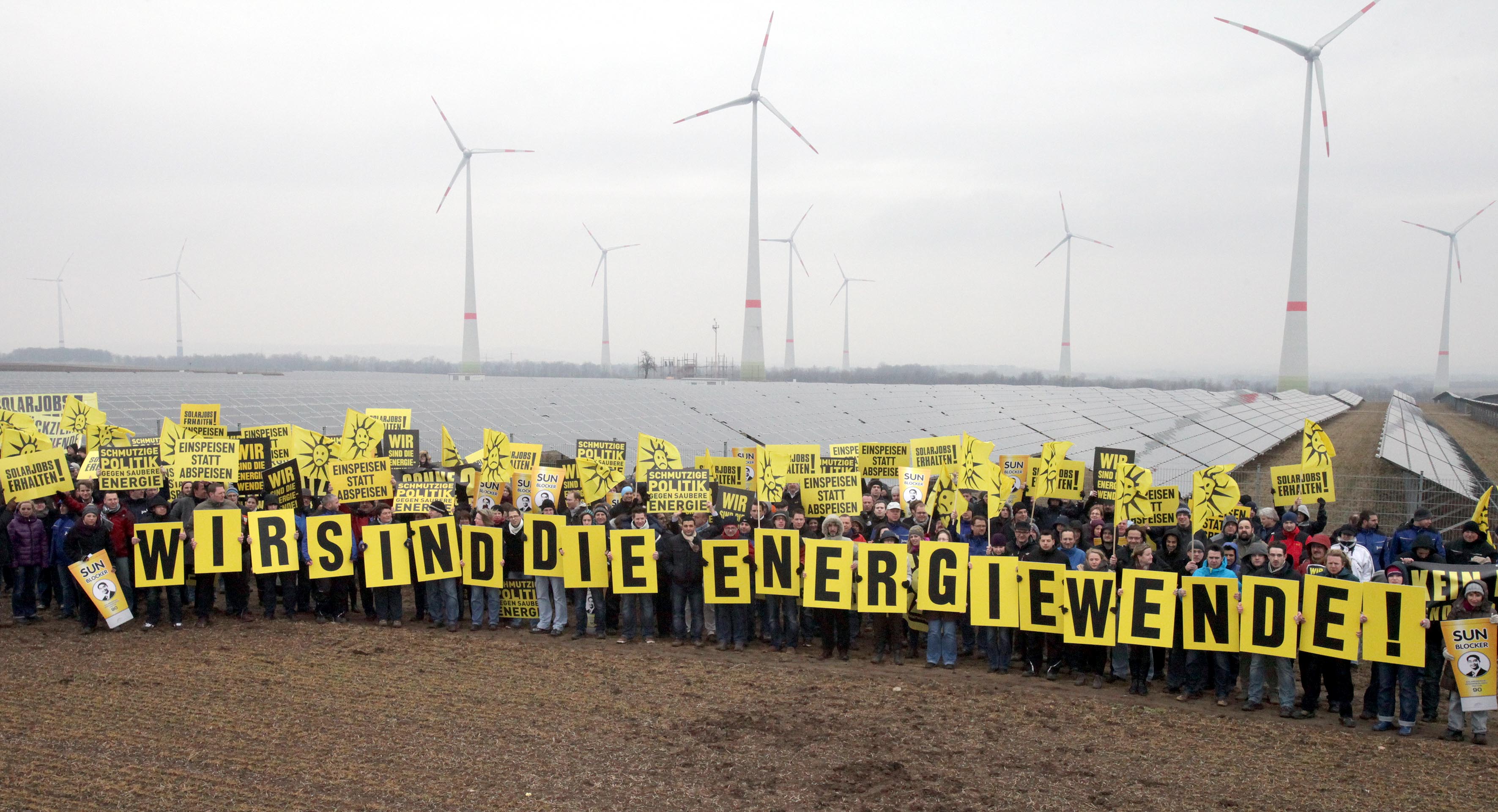 Die Mitarbeiter von juwi appellieren mit ihrem Protest an die Politik, den Aufbau der Solarwirtschaft nicht durch überzogene Kürzungen bei der Förderung zu vernichten.