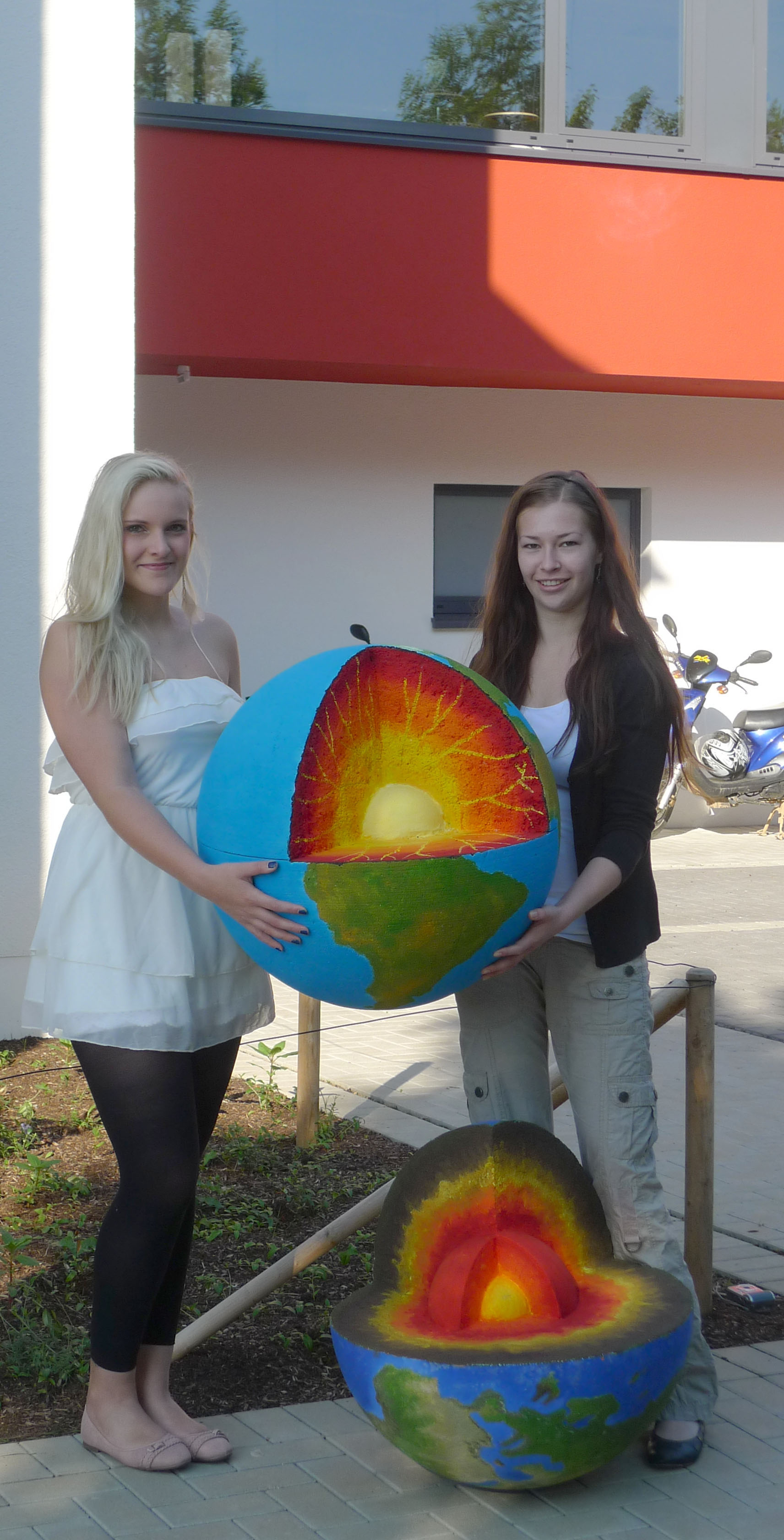 Schülerinnen des Leistungskurses Kunst des Gymnasiums Lennestadt haben bei der Gestaltung des Standes mit der Erstellung dreidimensionaler Erdkugeln geholfen.