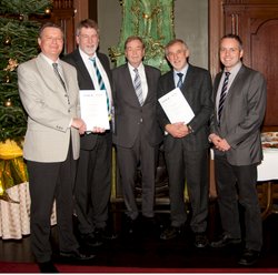 Matthias Volmari (Geschäftsführer OffTEC), Andreas Rauschelbach (Geschäftsführer OffTEC), Michael Schuhmacher (KWS), Heinrich Nacke (stv. Geschäftsführer und Schulleiter KWS), Jörg Schulte-Trux (KWS)