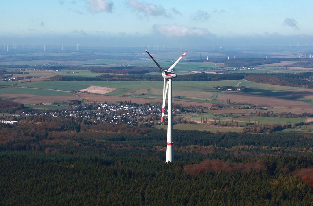 Im Bereich Windenergie wurde Ellern im Hunsrück zu einem sichtbaren Meilenstein der Energiewende. Am Rande des Soonwaldes drehen sich zum Jahresende fünf mächtige Windräder vom Typ Enercon E-126. Diese gut 200 Meter hohen Windenergieanlagen gelten als die leistungsstärksten Windräder für Binnenstandorte. Zusammen mit drei weiteren Anlagen vom Typ E-101 erzeugen sie in einem Jahr fast 120 Millionen Kilowattstunden sauberen Strom. Das reicht für mehr als 33.000 Haushalt und entlastet die Umwelt von rund 85.000 Tonnen des klimaschädlichen Treibhausgases CO2. Die Windräder werden zusammen mit weiteren im Bau befindlichen Anlagen von juwi und dem österreichischen Stromunternehmen VERBUND AG betrieben.