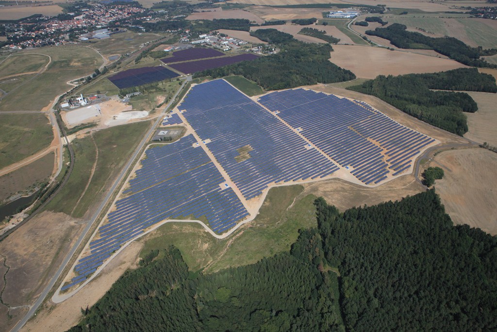 Selten findet man Vergangenheit und Zukunft so nah beieinander wie in Ronneburg (Thüringen). Wo einst im Tagebau tonnenweise gefährliches Uran abgebaut wurde, fließt in Kürze sauberer Sonnenstrom. Über 41.000 Solarmodule produzieren Öko-Strom für mehr als 5.600 Haushalte. Damit ist der von juwi projektierte Solarpark der größte in Thüringen. Die Anlage hat eine installierte Leistung von 20 Megawatt und wird auf eigens von juwi entwickelten Untergestellen errichtet. Pro Jahr produziert sie knapp 19,7 Millionen Kilowattstunden sauberen Strom. Das reicht aus, eine kleinere Stadt wie Ronneburg vollständig mit Sonnenstrom zu versorgen. Zudem werden pro Jahr rund 13.600 Tonnen klimaschädliches Kohlendioxid (CO2) vermieden. Der produzierte Öko-Strom wird in das regionale Stromnetz eingespeist. Der Solarpark wurde auf städtischen Grund errichtet. Die Pachteinnahmen sowie die Gewerbesteuern kommen unmittelbar der Gemeindekasse zu Gute.