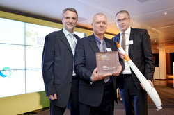 Bildunterschrift: „Verleihung des „German Renewables Award 2013“, v.l.n.r.: Prof. Dipl.-Ing. Henry Seifert (fk-wind: Institute for Wind Energy, Hochschule Bremerhaven), Dipl.-Ing. Jörg Spitzner (SPITZNER ENGINEERS GmbH), Ingolf Lührs (BayWa r.e. Rotor Service GmbH)”