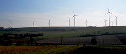 Bildunterschrift DSC 0014.jpg: Die zehn Windräder auf dem Hungerberg produzieren sauberen Strom für 30.000 Haushalte.