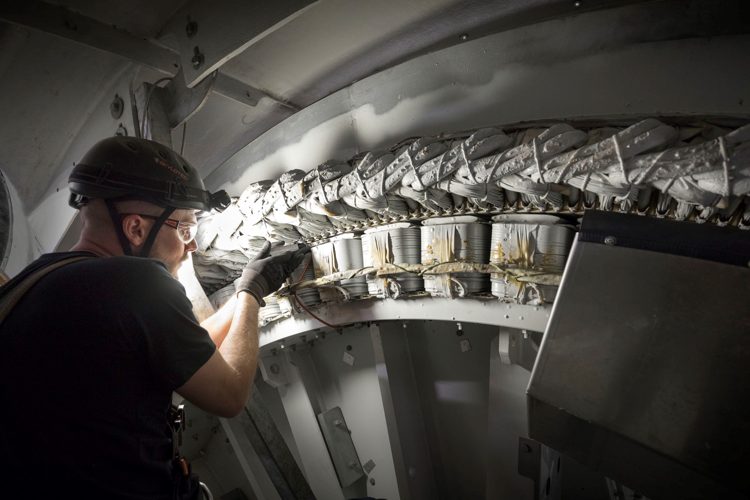 Das Messen des Generator-Luftspaltes mit der Fühlerblattleere gehört zu den Standardwartungsaufgaben am Ringgenerator.