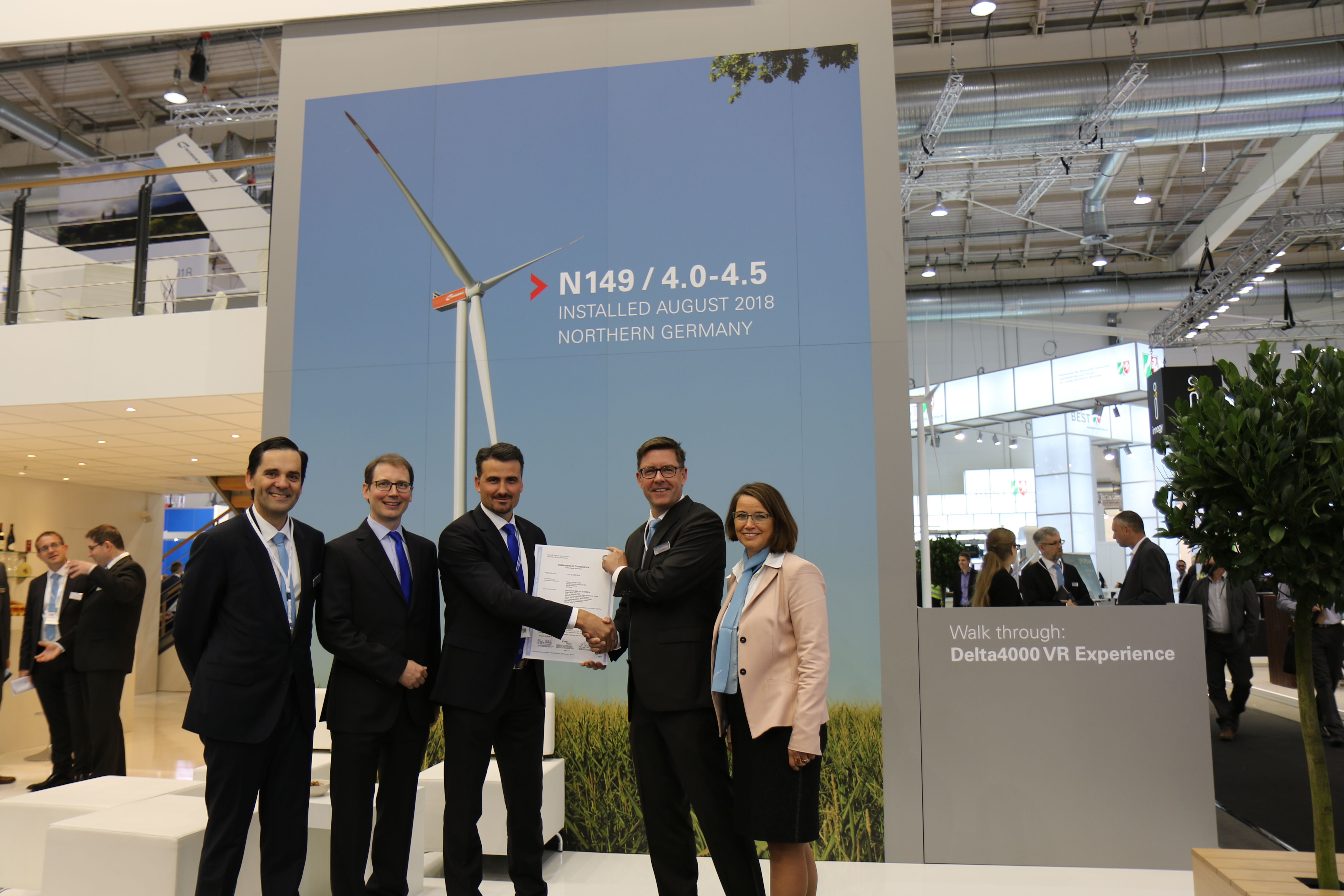 Zusätzlich zur IEC-Typenzertifizierung fordert gesondert der deutsche Markt eine Zertifizierung nach dem deutschen DIBt 2012 Standard – die sogenannte DIBt-Typenprüfung. TÜV SÜD hat parallel jetzt auch die DIBt-Typenprüfungen für die N149/4.0-4.5 für Nabenhöhen von 105, 125 und 164 Metern ausgestellt. Auch diese Varianten können mit Standard-Rotorblättern oder Anti-Icing-Rotorblättern ausgestattet werden.