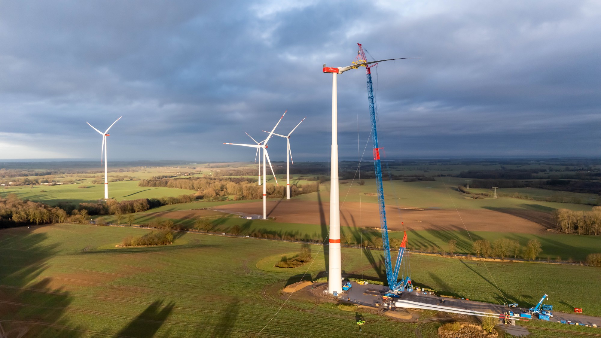 Hamburg (renewablepress) - On January 26, 2025, the Nordex Group installed a N175/6.X turbine for the first time on a self-developed concrete-steel tower with a hub height of 179 metres in Santow in Mecklenburg-Western Pomerania, Germany.