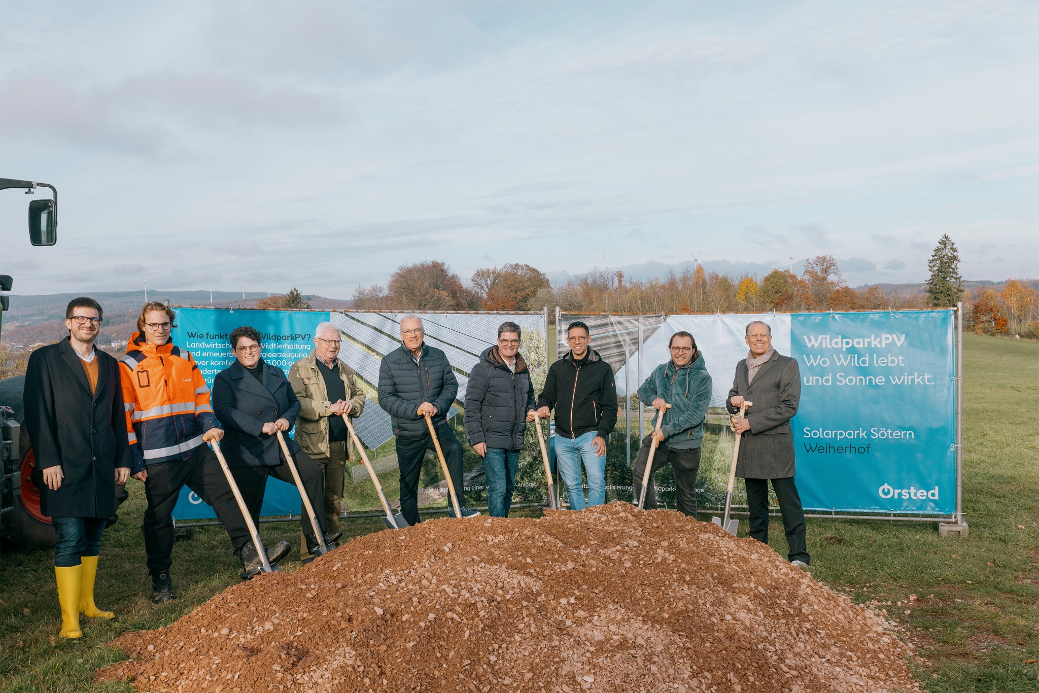 https://www.iwrpressedienst.de/bild/orsted/6f304_Orsted_WildparkPV_Soetern_Spatenstich_111125.jpgBU: Spatenstich für die WildparkPV-Anlage Sötern mit St. Wendels Landrat Udo Recktenwald (5.v.r.), Nohfeldens Bürgermeister Andreas Veit (4.v.r.), Ørsteds Prokuristen Annemarie Röbl (3.v.l.) und Christian Kutschker (1.v.r.), Weiherhof-Inhaber Wolfgang Welter (4.v.l) und weiteren Projektbeteiligten